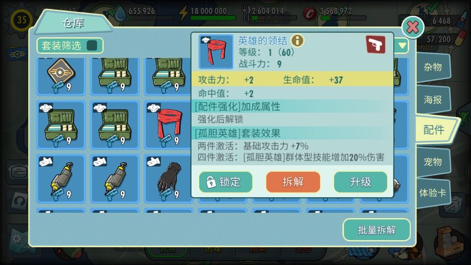 副本过程中也会随机掉落孤胆英雄配件,不过品质都不太好,刷了这么久全是白的,绿的,最高蓝的。