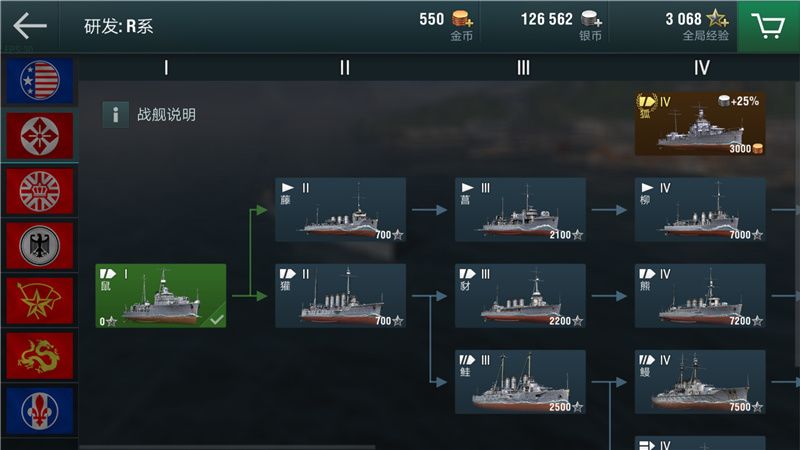 《战舰世界闪击战》中共有四大类型的战舰,分别是巡洋舰、驱逐舰、战列舰和航空母舰。巡洋舰功能全面,无所不能;驱逐舰操作性强,鱼雷犀利;战列舰火力凶猛,防御强悍;航空母舰空中支援,覆盖全图。游戏中目前共有M、R、Y、D、S、C、F七系战舰亮相,每系的战舰都拥有不同的特点,有的性能均衡,有的追求速度,有的崇尚口径,你也可以在不断解锁科技树的同时,找到最适合你的那艘海上巨无霸!