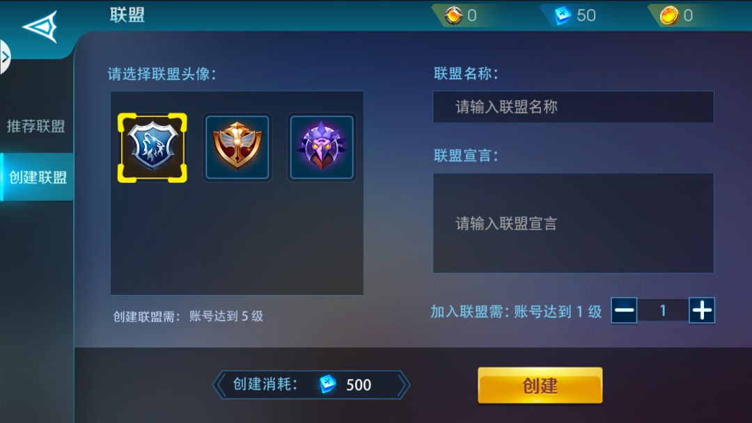 另外,如果你不喜欢加入别人的联盟,你可以选择自己创建联盟,带量小伙伴去征服这个世界!