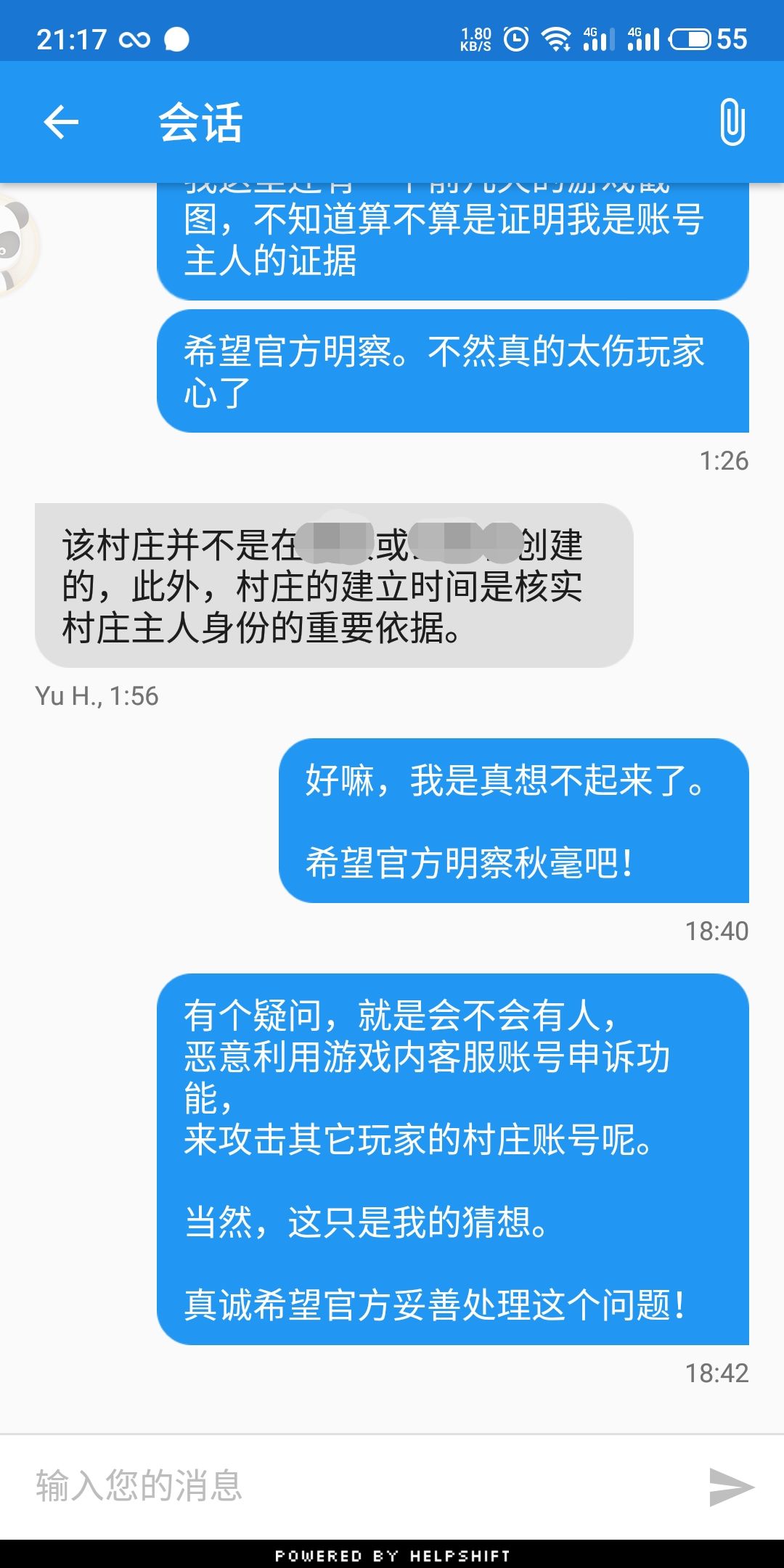7、有问题先在游戏内找客服,客服也只有在游戏内联系了!但不要找机器人客服,要人工服务!人工客服!人工服务的客服!最后时不时游戏内截个图留个纪念?存在安全的地方。玩家标签备份一个?!
