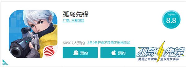 将于3月9日iOS公测和安卓不删档测试的《孤岛先锋》,是网易首款上帝视角生存竞技手游。其创新的“生存竞技”+“MOBA”玩法自内测以来就吸引了大批玩家的热烈追捧。在各大媒体平台、Q群等地方,随处可见求公测时间的信息,在TapTap中的预约量也高达6万。