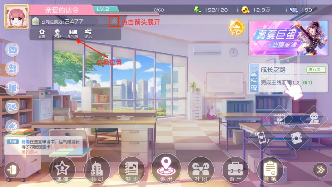 礼包码的兑换需要在游戏大厅的这个位置