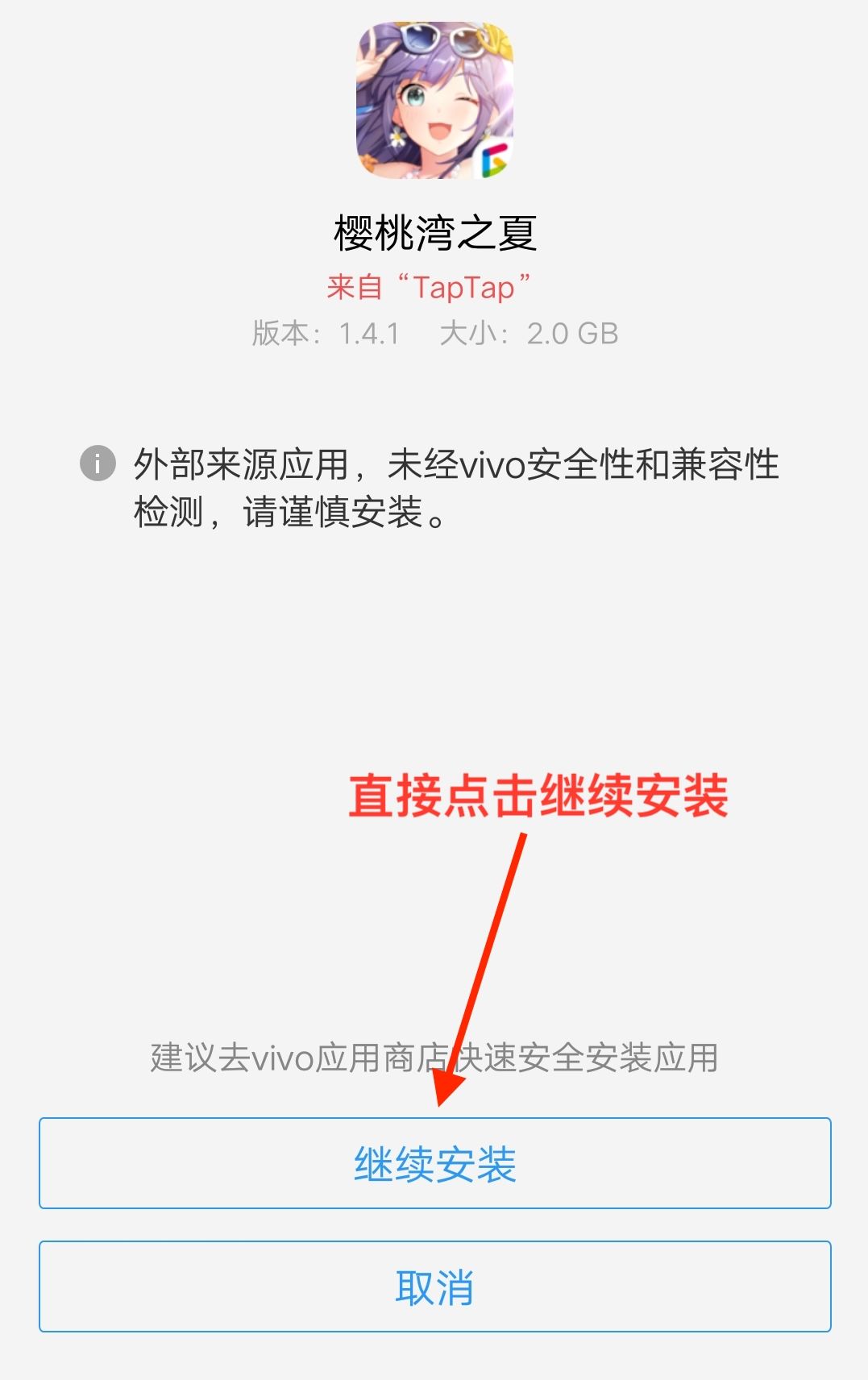 这种原因是手机自带应用商店的问题,可以忽略,直接跳过后继续安装就好。