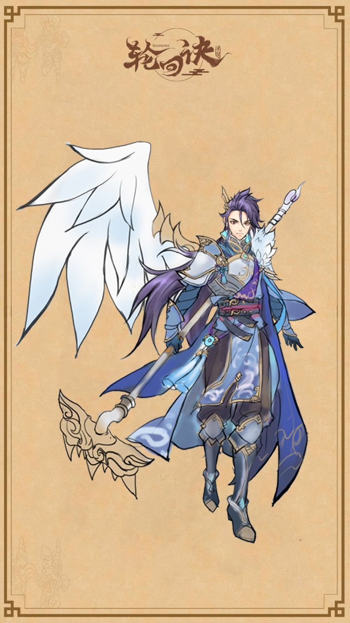 对天蓬的形象的颠覆既简单又复杂,简单来说就是一个字,帅!难则在于需要帅到什么程度,必须是天庭的颜值担当。于是一位飘逸紫发,单翅白羽,剑眉星眸的翩翩少年就此诞生。天庭第一帅是达标了,但是徒有其帅没有内涵,与掌管百万天军的将领气质相差甚远。因此原有飘逸的衣着搭配变为了整洁的银甲束腰,一派军中装仪,简洁而大气。