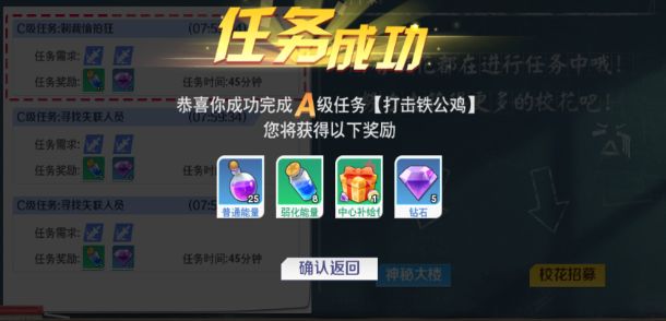 SSS级任务:10钻石、中心特级表彰包x1、强化能量若干