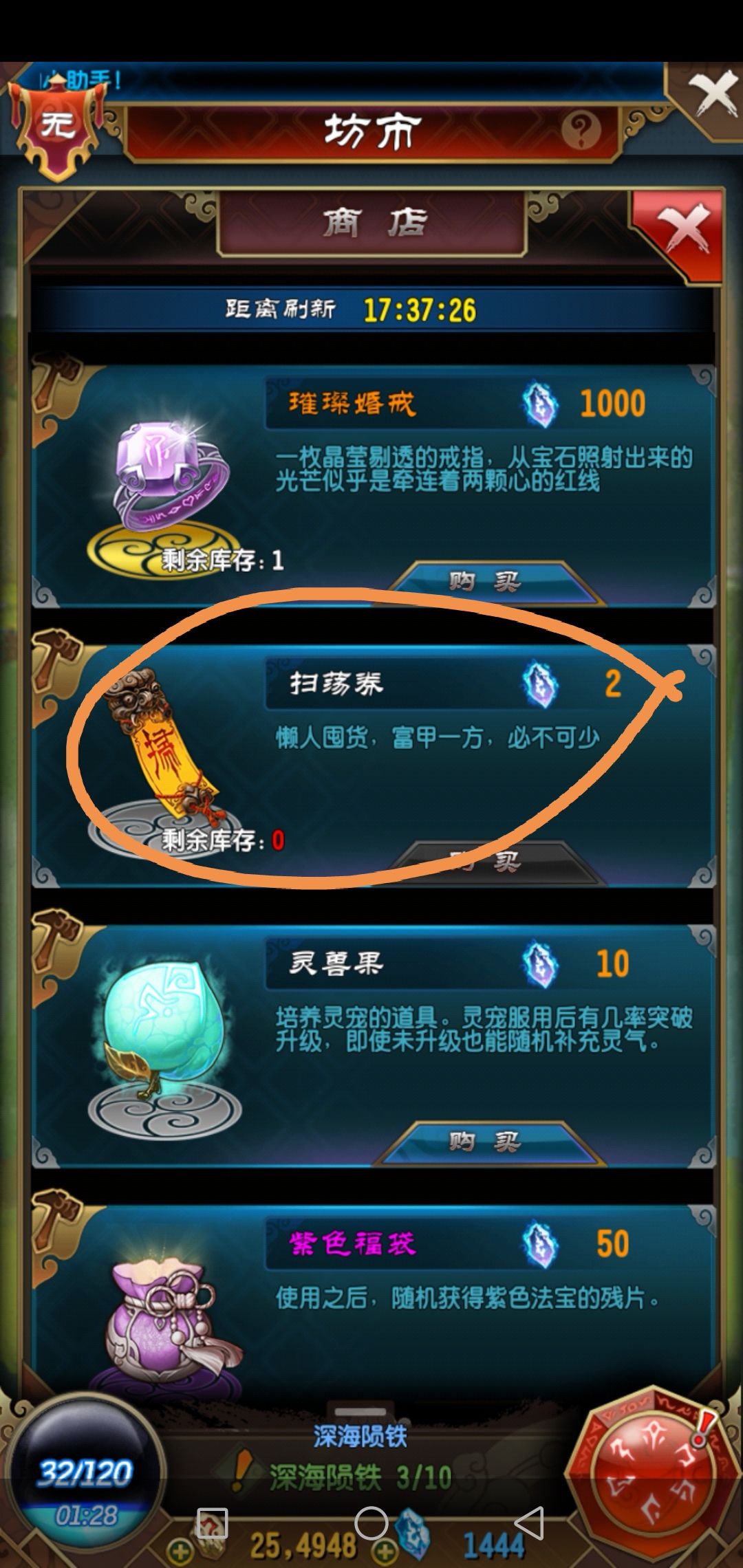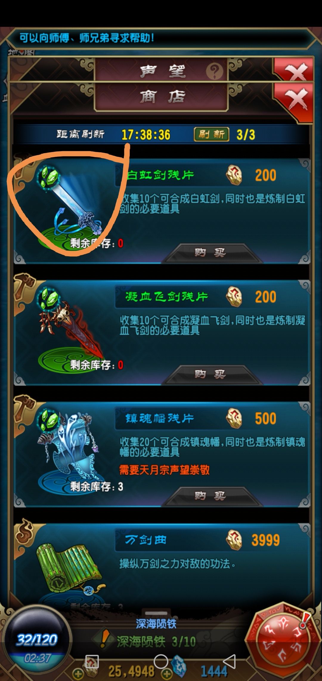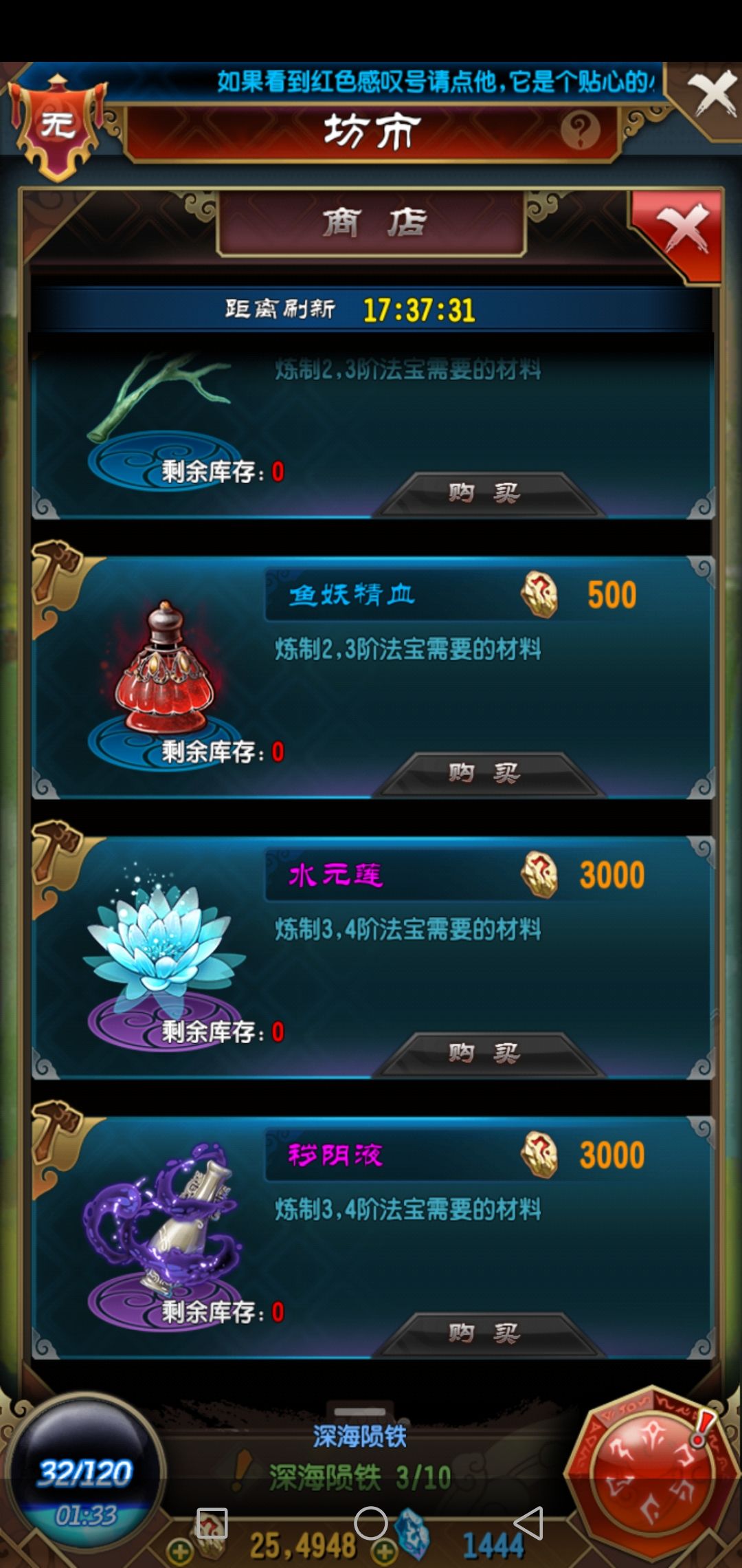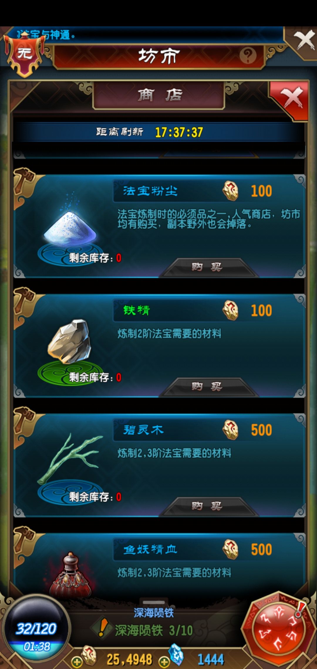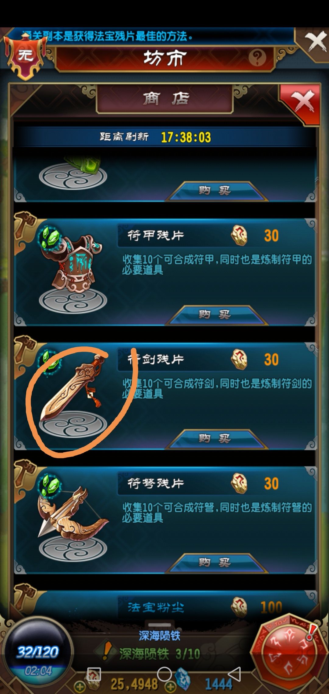 ②除了青铜宝箱,其它三个不要买。这是你法宝碎片的主要来源之一。