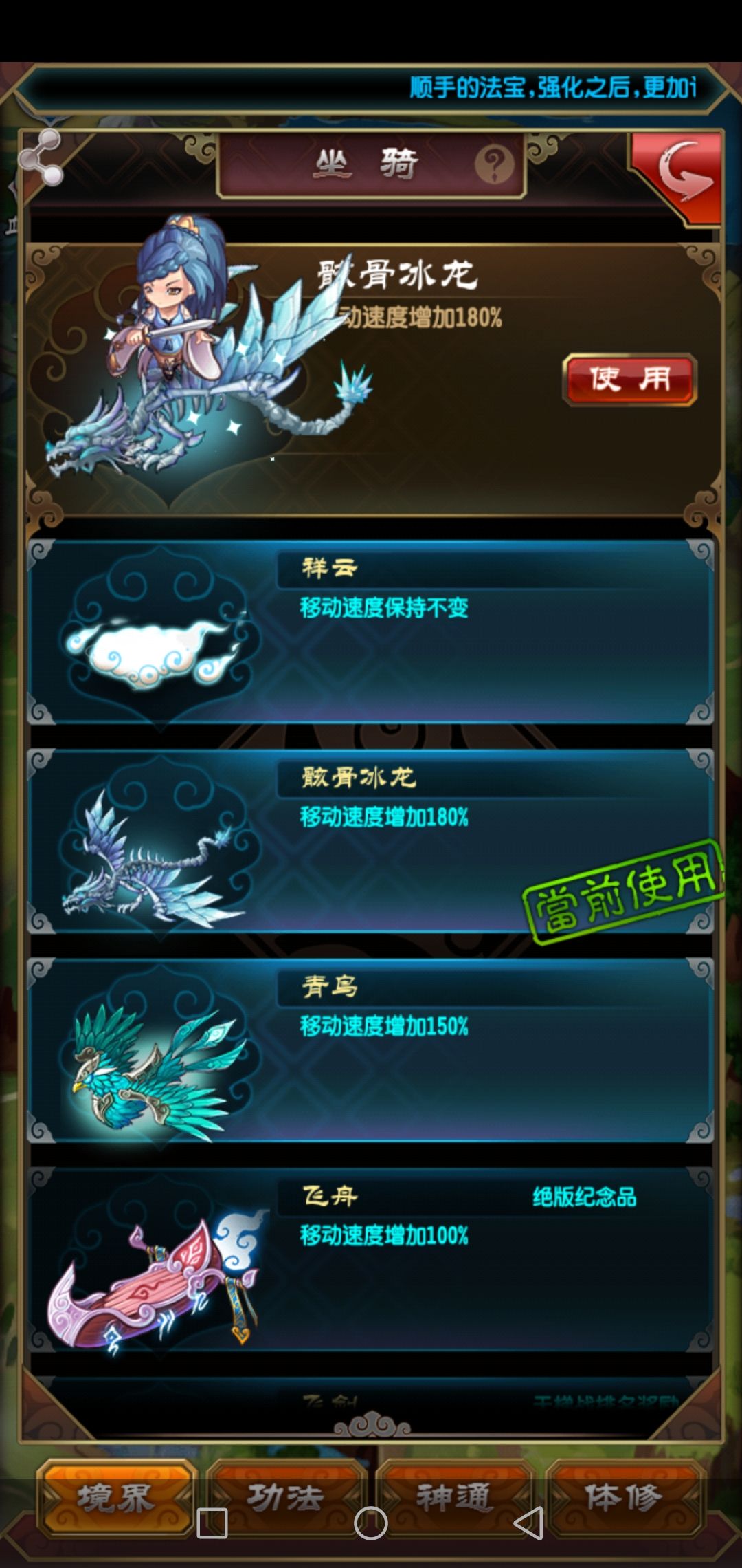 tips:肉身属性可叠加,所以哪个好看选哪个。但是坐骑不行。然后接着是