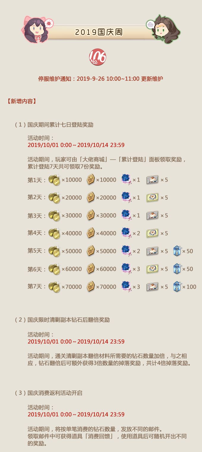 No.106 2019国庆周 《姬魔恋战纪》9月26日更新公告