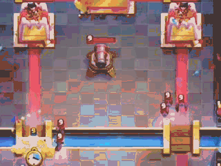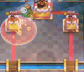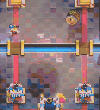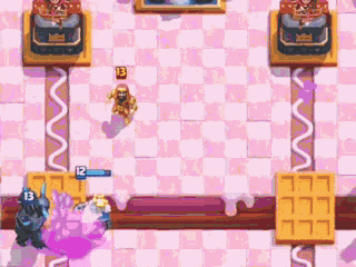 E我们可以在竞技场的边缘沉底槌子,在过桥头的时候把皮卡放在桥正中央,这样槌子就会受皮卡的影响走位,不会被中间的加农炮吸引