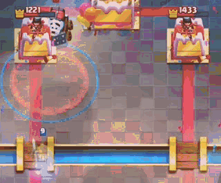 B有时候用幽灵探卡的时候,对面会选择沉底电车,当幽灵到塔前的时候已经可以砍到电磁炮了,所以那时候补个小闪,电磁炮就会残血了,再把神箭放好位置,透胖子的同时透到电车