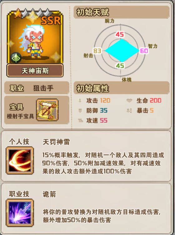 (3)狙击手:职业技诡箭,将你的普攻替换为对随机敌方目标造成伤害,额外增加50%的暴击伤害(建议在第3,4排输出)