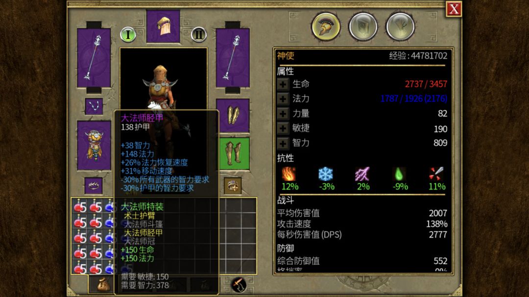 武器前中期用电仗,后期玩三重打击用冰杖