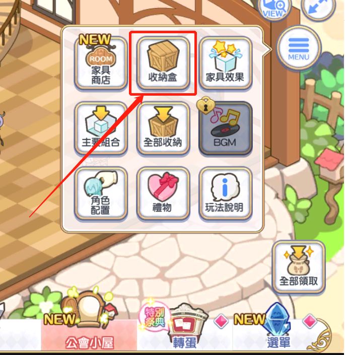 1、通关地下城,可以获得增加体力的家具通关地下城得来的家具,需要从工会小屋——收纳盒中放出来才会有收益,初始给的家具可以用家具币升级,获取更多收益。