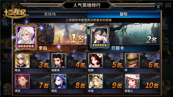 在经过了首测和二测之后,《十二战纪》吸收了大量玩家提出的建议和反馈,并在此基础上对于游戏内角色成长节奏进行了重新的梳理和优化。希望在此次公测降临的时候,让玩家感受到最明显的游戏体验提升就是高星级英雄的收集和培养更加轻松,通关副本获取资源更加顺利而让培养英雄更加有动力和成就感。另外游戏内对于人气英雄排行进行盘点,帮助新手玩家快速上手。