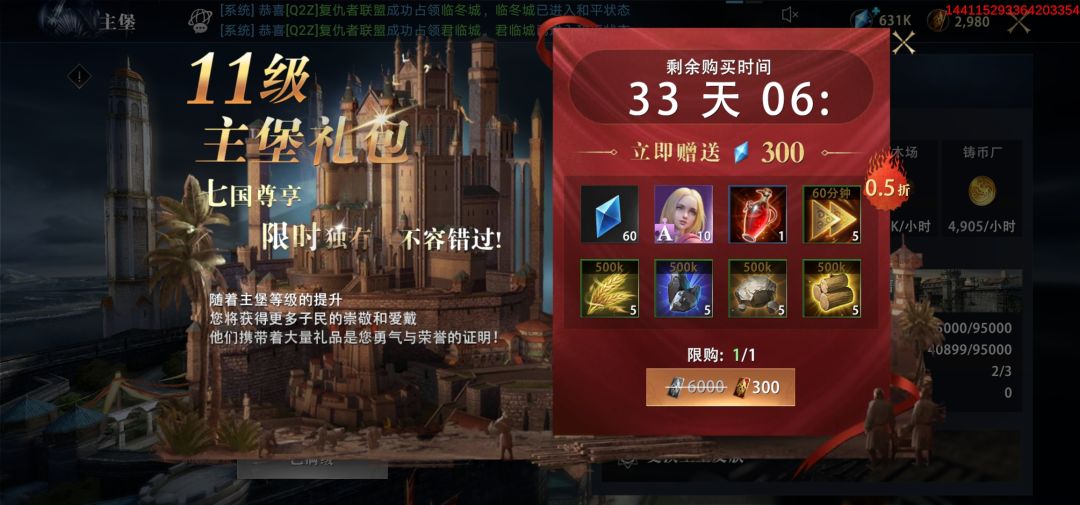 主堡等级提升强化后,领主们对应的资源田生产效率、军队训练速度、城防强度等也会同步提升,且游戏内目前有特定等级的主堡礼包可以领取,其中包含指挥官碎片、加速、资源等丰厚奖励。领主们快来强化你的领地吧!