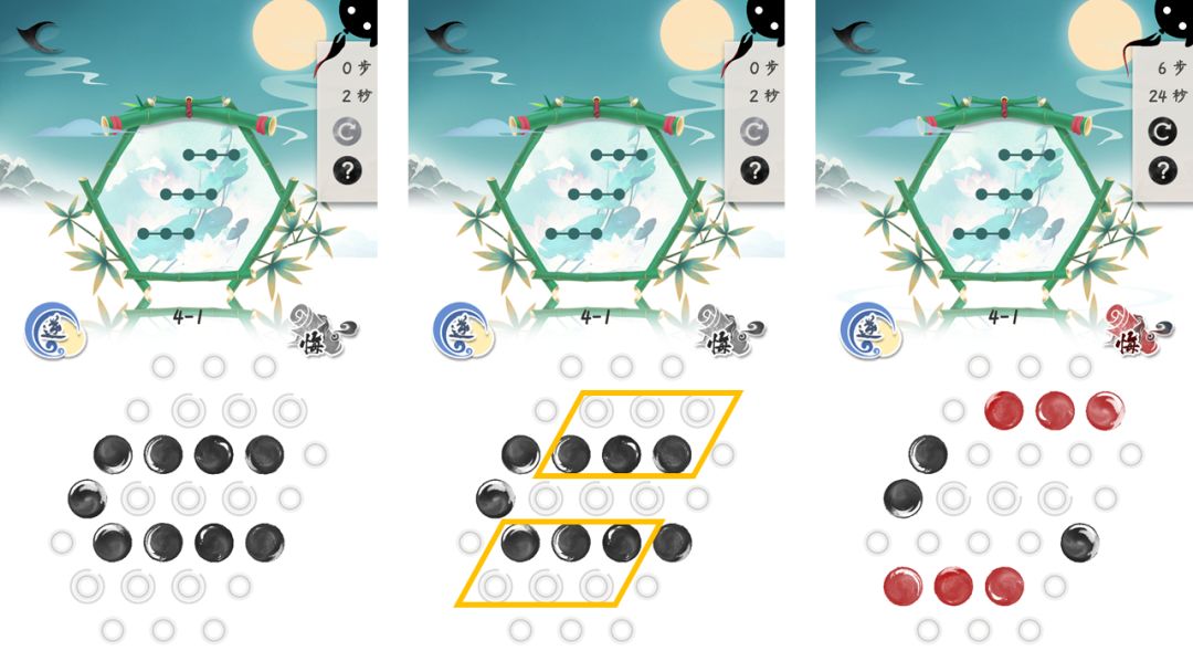 在关卡3-2,我们会碰到一个新的定式——【三格直线的平移】
