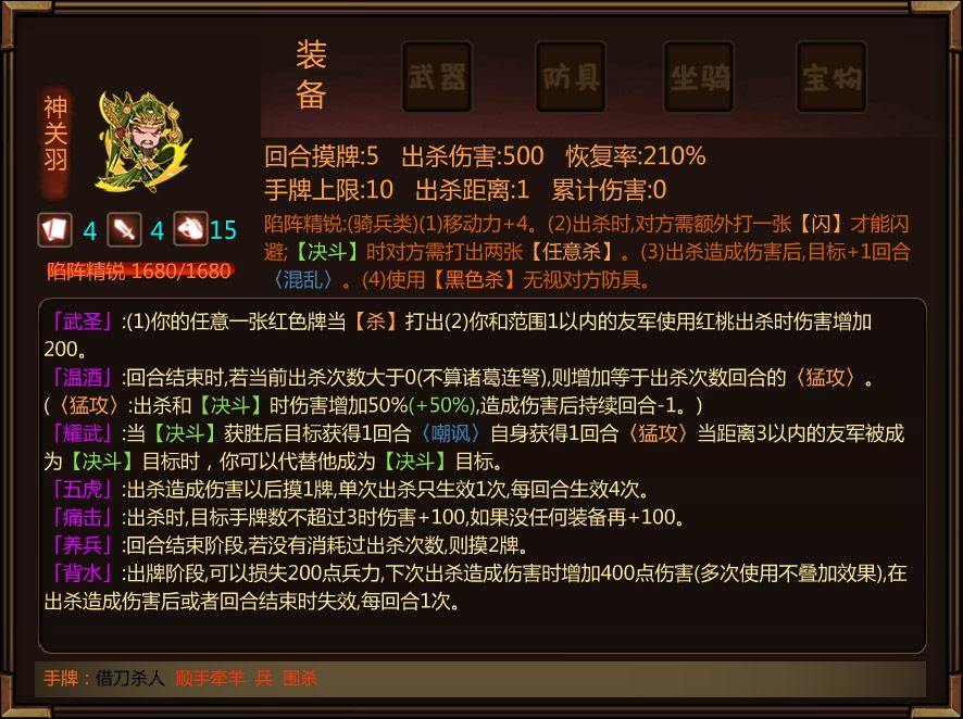 欢迎各位玩家来参与闯关杀武将“关羽”的讨论,你的发言可能帮助其他玩家更好的使用该武将,也能帮助开发者优化武将。