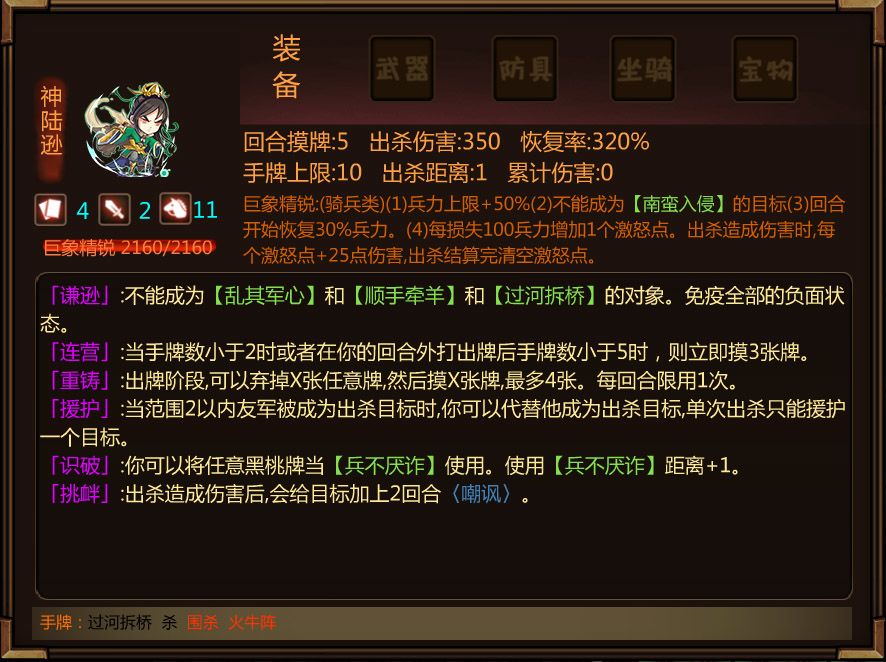 欢迎各位玩家来参与闯关杀武将“陆逊”的讨论,你的发言可能帮助其他玩家更好的使用该武将,也能帮助开发者优化武将。