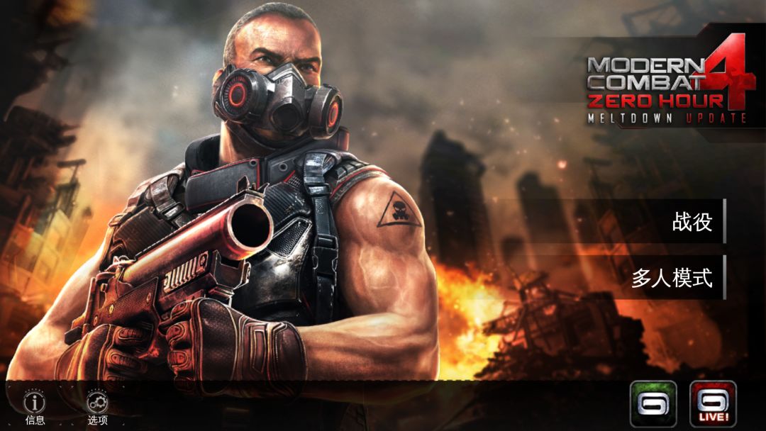 首先从主页来说,额,GAMELOFT你就不能弄个好看一点的人物做主页装饰吗?我知道你很像突出这款游戏的硬派形象,但是能不能不要把人物弄得这么难看?好不?