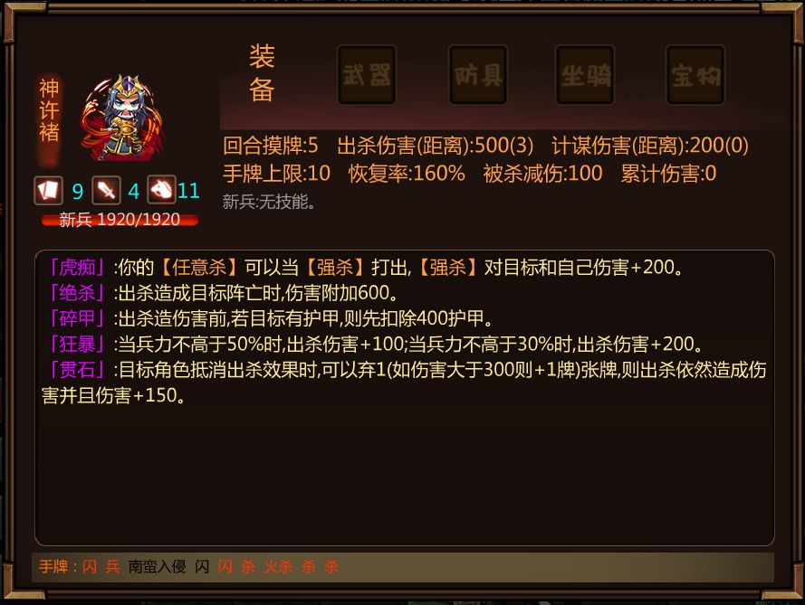 欢迎各位玩家来参与闯关杀武将“许褚”的讨论,你的发言可能帮助其他玩家更好的使用该武将,也能帮助开发者优化武将。