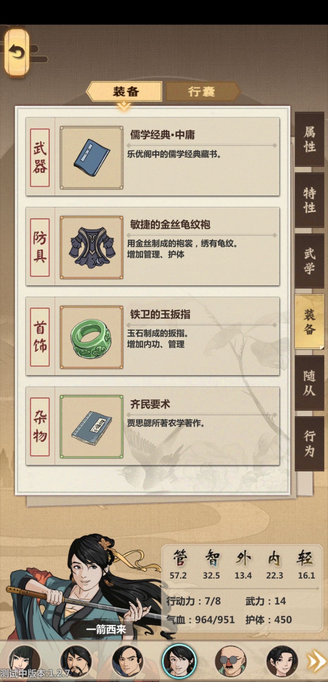 武器中庸 +3 衣服行侠商人橙色金丝打造+10 饰品+10(行侠商人两个+3橙色石头打造)书是最后开的地图买的+9 衣服需要在第一二次行侠尽快凑齐。前期