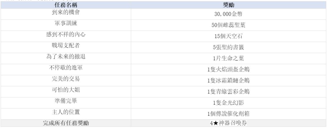- 以下关卡各有三个关卡任务,且完成关卡任务时可获得天空石。