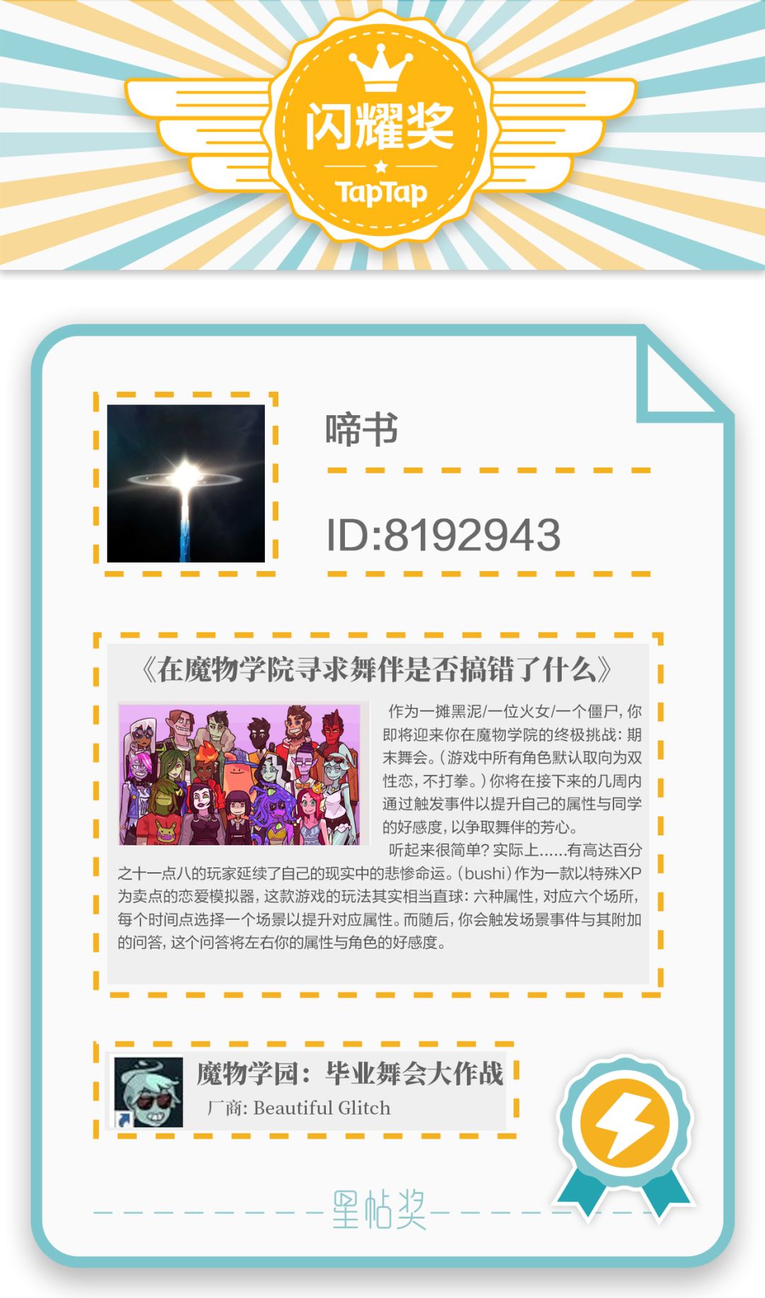 「星帖奖」栏目是为更好地挖掘 TapTap 游戏爱好者的优质内容,提升 UGC 影响力,鼓励优秀内容贡献者而创。