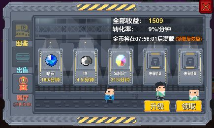 矿车驾驶员可以把搜集来的矿石安置在矿石展览厅的展览台,供矿石镇的居民参观,居民也不是来白嫖的,他们会源源不断的贡献自己的金币,给矿车驾驶员在游戏外的时间也能带来收入!(其实就是挂机系统啦)