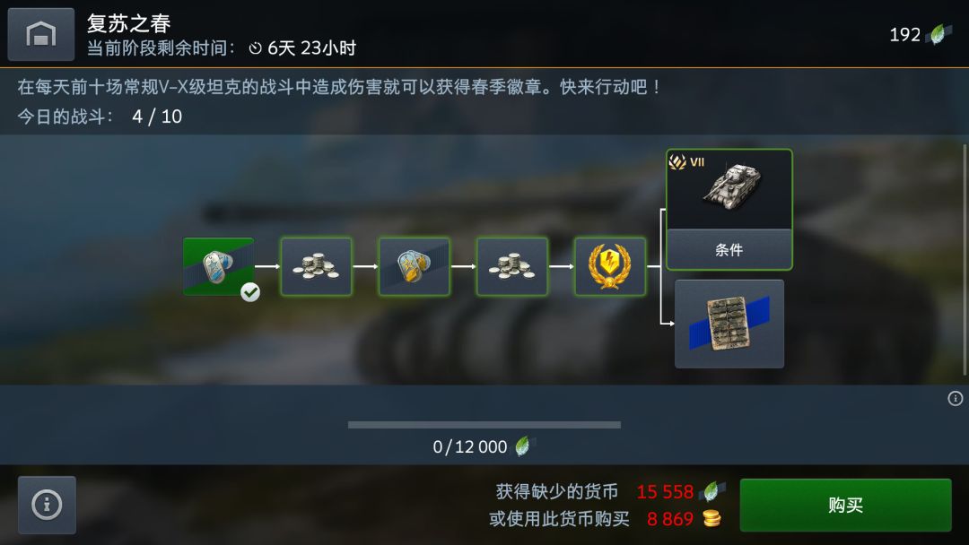 如图,在新活动中,获得坦克需要16000徽章,一天计算前十次战斗,每造成10点伤害获得一个徽章,活动总共持续七天。
