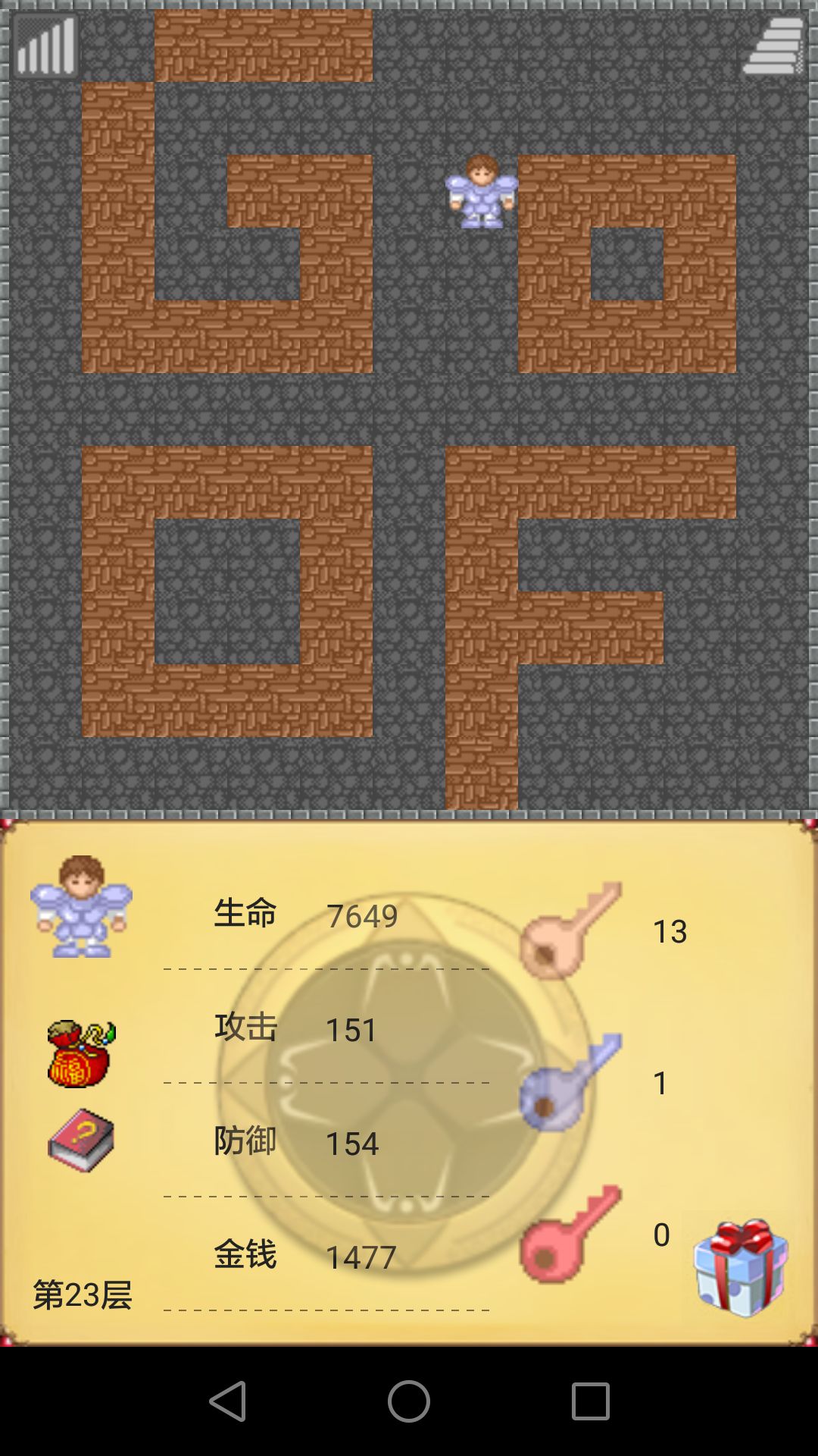 继续往上,该杀的杀不杀的不杀,楼主是在32层商店加了属性攻击防御,也可以等到最后一个商店狂买防御,不过记得留4000钱买地震卷轴,地震卷轴在47层商人那里买