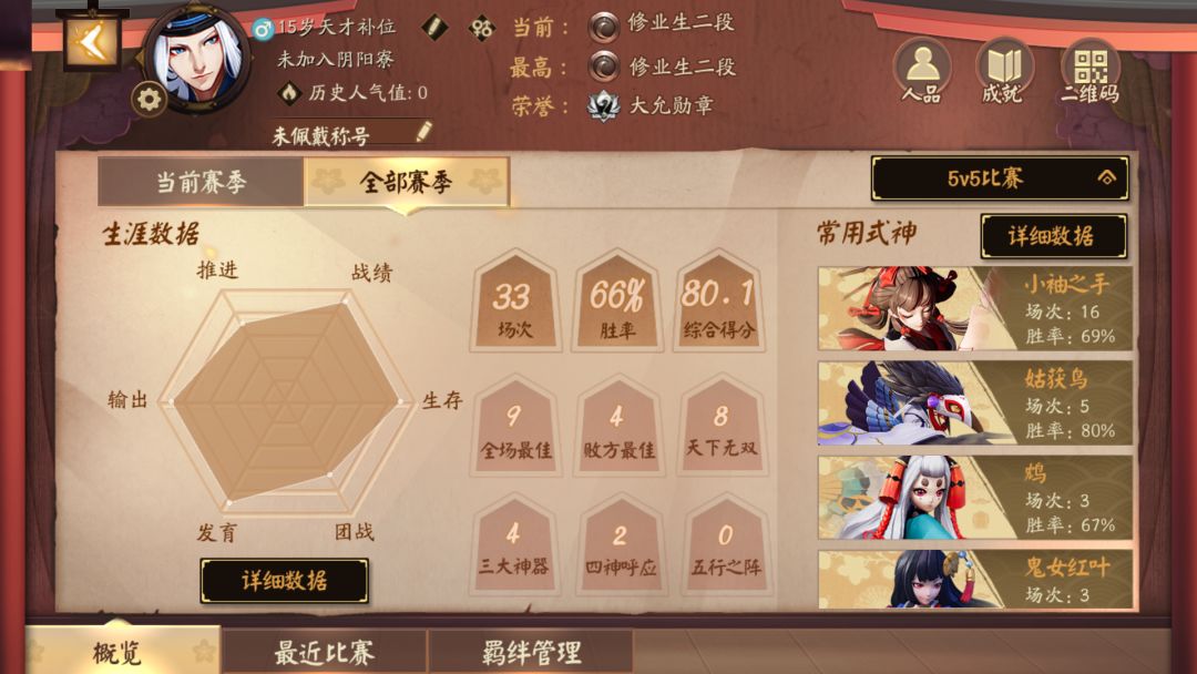 首先小袖之手我只玩了三天,16盘,胜率从见习打也只有60,但。。。这真的不是我菜,我原来的号也有少允快大允啊.....由此可见小袖这个式神啊...