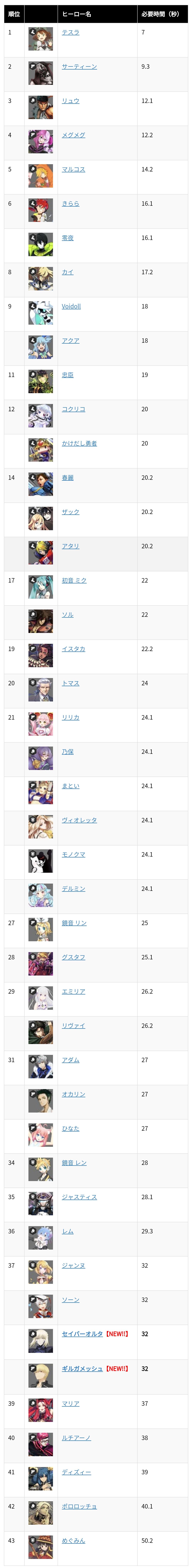 大招充能速度一览
