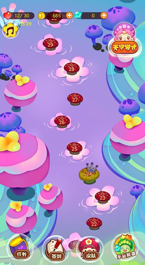 粉色小蘑菇代表限时关卡,只限定时间,不限定步数,达成目标即可通关~