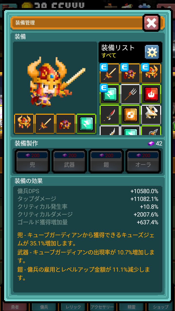 闲来无事,对打算要入坑的玩家提一些建议。希望能有所帮助。!!!这款游戏点击造成的伤害从始至终都占相当大的比重!!!①装备:金币加成>佣兵伤害加成>暴击伤害加成>点击伤害加成>暴击率加成绿色装备并不都比橙色的装备差。只要绿装属性好,可以完全舍弃橙装附带的额外属性。注意:降低佣兵雇佣和升级费用的橙装一定要保留!!!