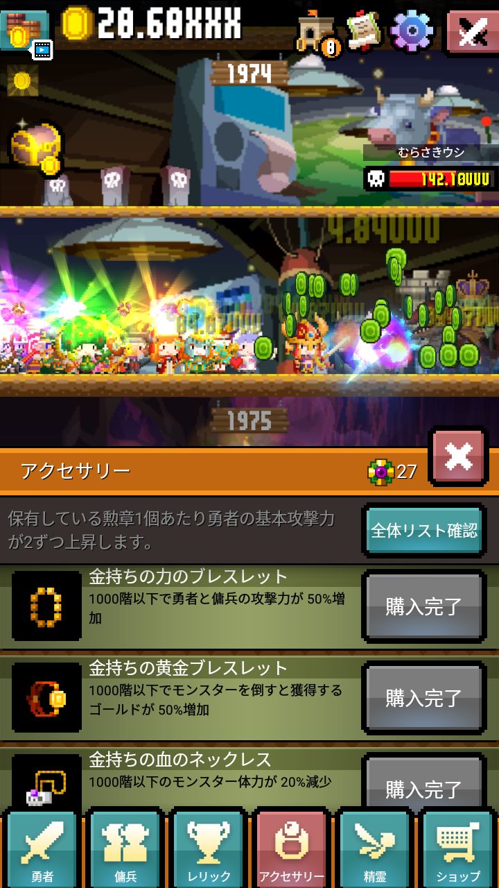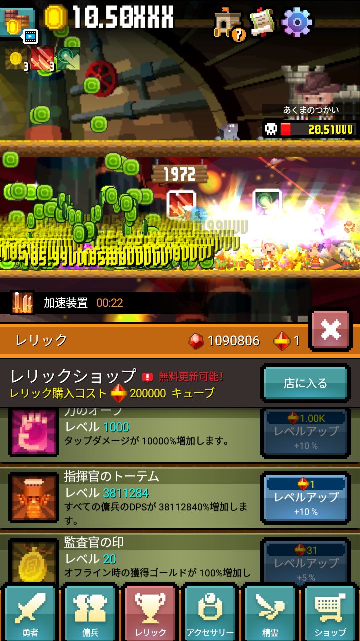 这里也吐槽一下1000级之后出现的强化版完全没有买的必要,性价比远不如低级的。第二次撤退建议购买减少佣兵雇佣和升级费用的加成道具,该道具建议优先升至满级。多余的红石都丢到加DPS的加成道具上去。这之后就没什么好说的了,感觉缺什么属性就补什么。有余力的话最好把延长技能持续时间和减少技能cd的装备升满。第一第二技能优先。另外增加骷髅王掉落红石的加成道具,也是关键之一,可以显著增加每次撤退获得的红石。③佣兵装备:每次撤退会获得一件佣兵装备,提升100%佣兵DPS。每个佣兵有四件装备,集齐之后会再提升100%DPS。装备效果有两种触发方式,一种是攻击时几率触发,一种是击杀怪物几率触发。另外,请相信我,击杀怪物几率触发卵用没有。加成优先选择获得攻击获得金币效果。然后是减少CD。④勋章:优先购买1000层以下怪物血量减少20%,增加50%金币掉落,增加50%DPS三件。然后购买解除勋章层数限制的。