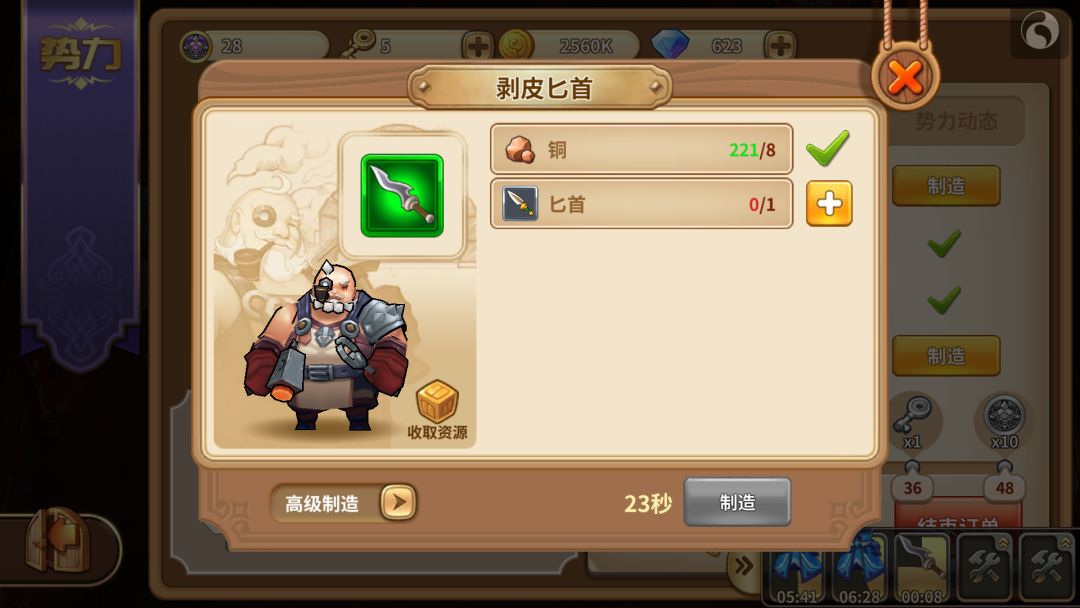 花费钻石升级,这样就不用辛辛苦苦的先做匕首再做剥皮匕首了——————————————
