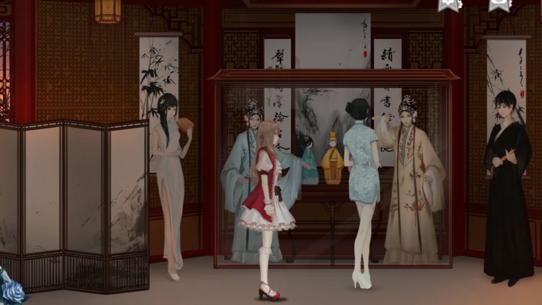 接着去剩下三个馆,在“中国人偶馆”有个NPC(背对着你的那个),点她触发剧情,注意,点一下触发剧情后剧情还没完,还要继续点。花旦点了也可以触发剧情。