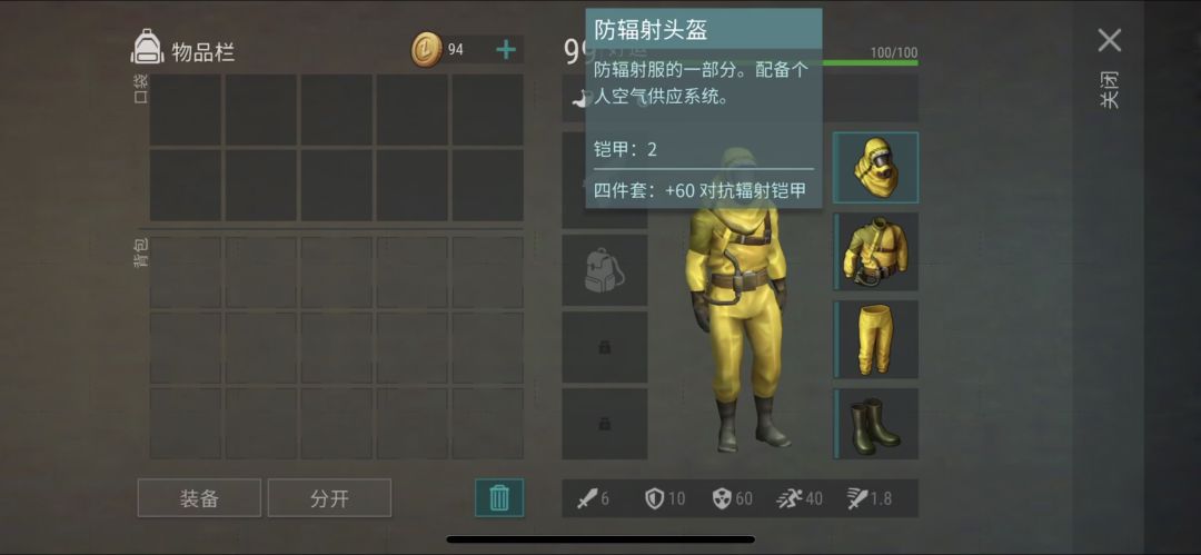 出发前,千万不要忘穿上你的辐射服!在电脑终端的左侧箱子里,加少量护甲和大量防辐射属性,不穿也可以,进入地图要不了多久就会空血的哟。