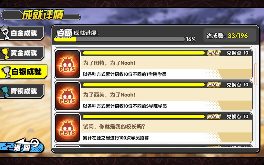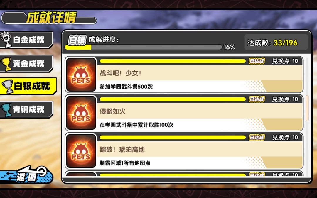 这里71咸鱼一个,因为成就商城解锁了没足够点数换新学员,所以我在这里发一下我的成就,萌新可以看看自己缺什么成就,大佬也可以发自己的成就,互帮互助,拜托了!_(:з」∠)_