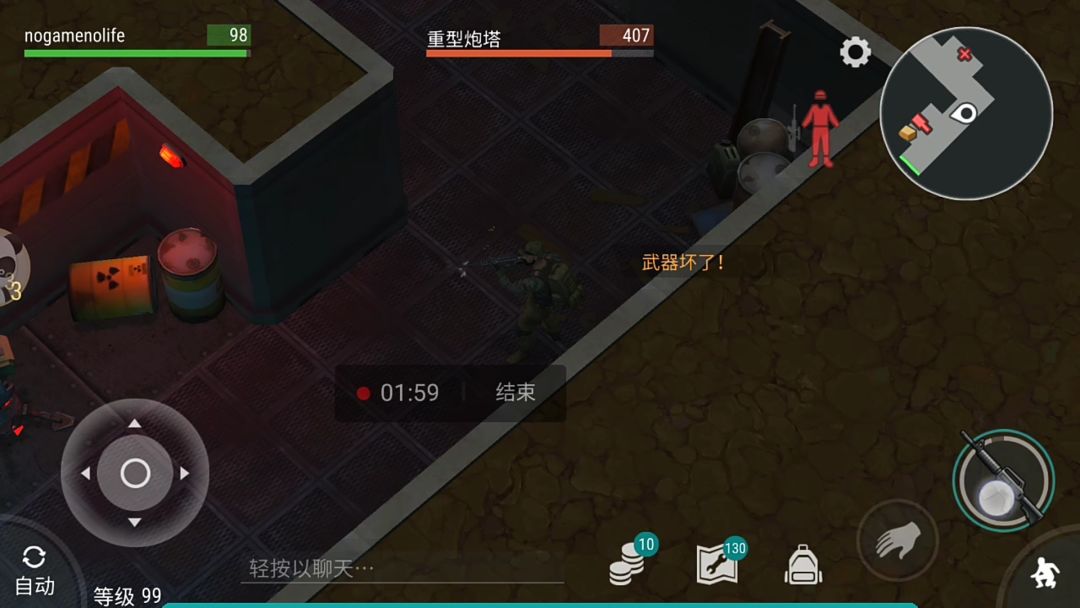 继续向前发现2架重型炮台 推荐拿长枪打(不改装的m16和改装的m16都只能一下打3 500/3=167 大约一个炮台一把m16 如果是15伤的ak 一下能打4)