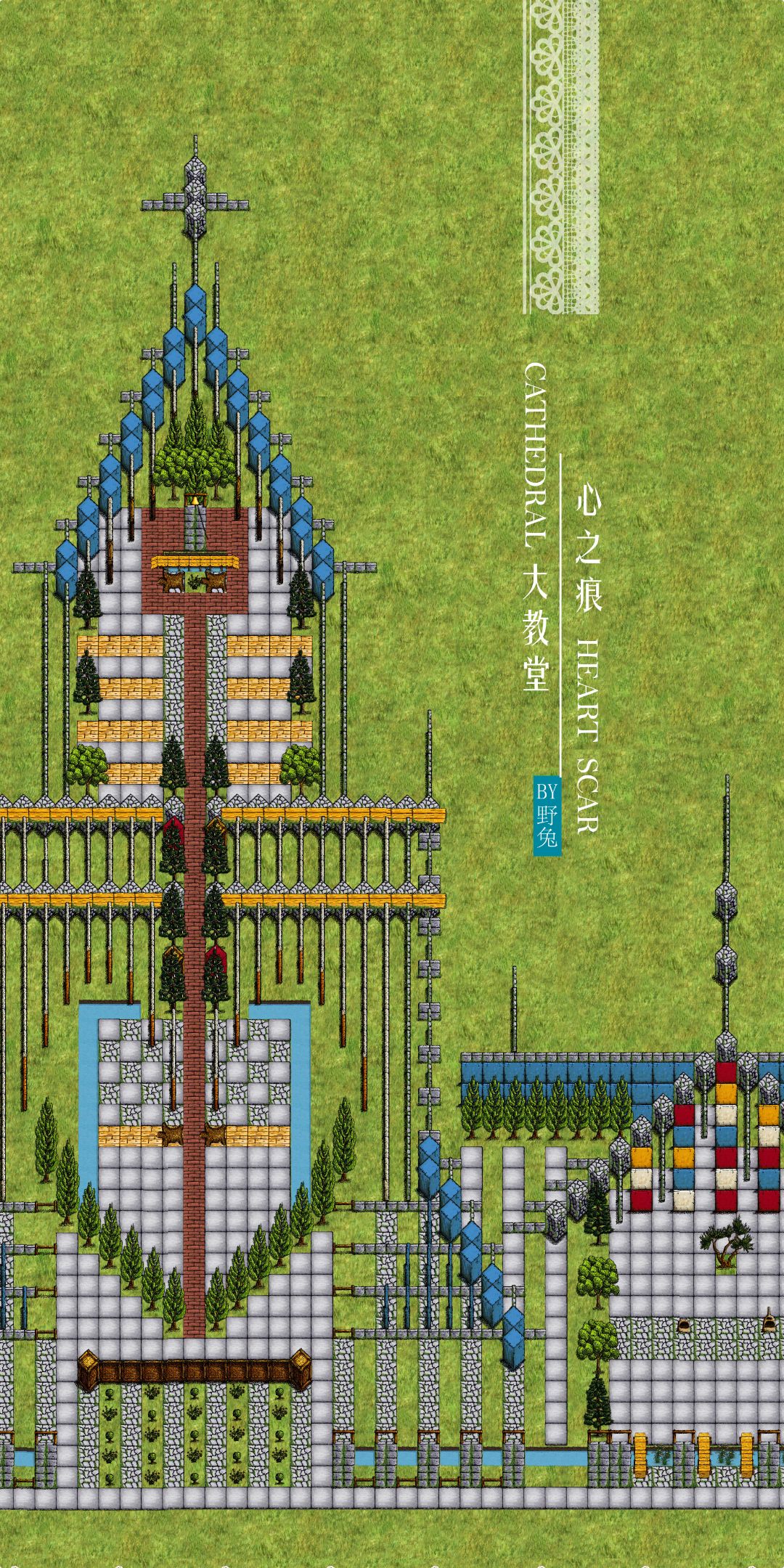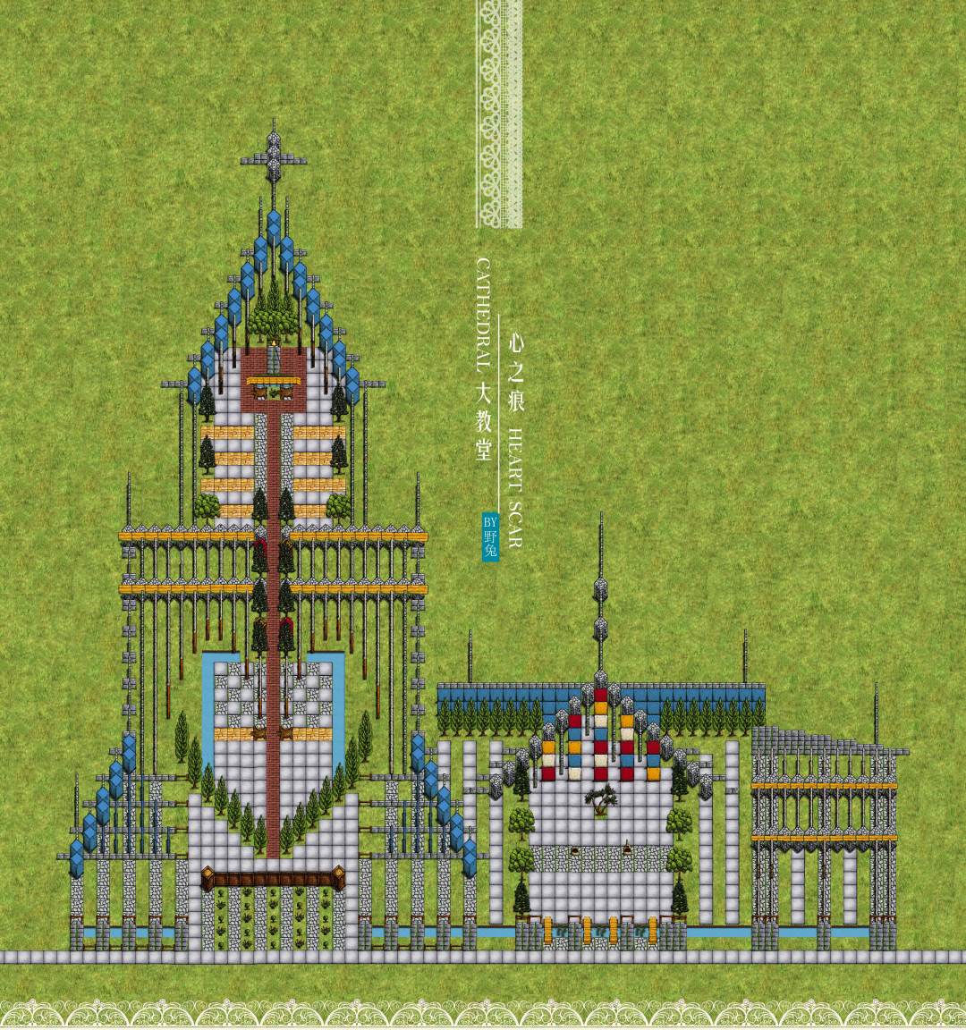 心之痕大教堂设计过程都没怎么太卡壳,起名字倒是想了半天,最后起了这个有点土土的名字,因为很久之前,自己写过一个短篇小说叫泪痕,是讲前生今世情缘的故事,突然想到希望给那故事里的男女主一个完美的婚礼,所以起名字泪痕,但是泪又太消极了,就改成心痕,心痕谐音心狠,于是又在心和痕之间加了之,就像天之痕那样的格式,正好天之痕也是我玩过的国产单机映像十分深刻的游戏。