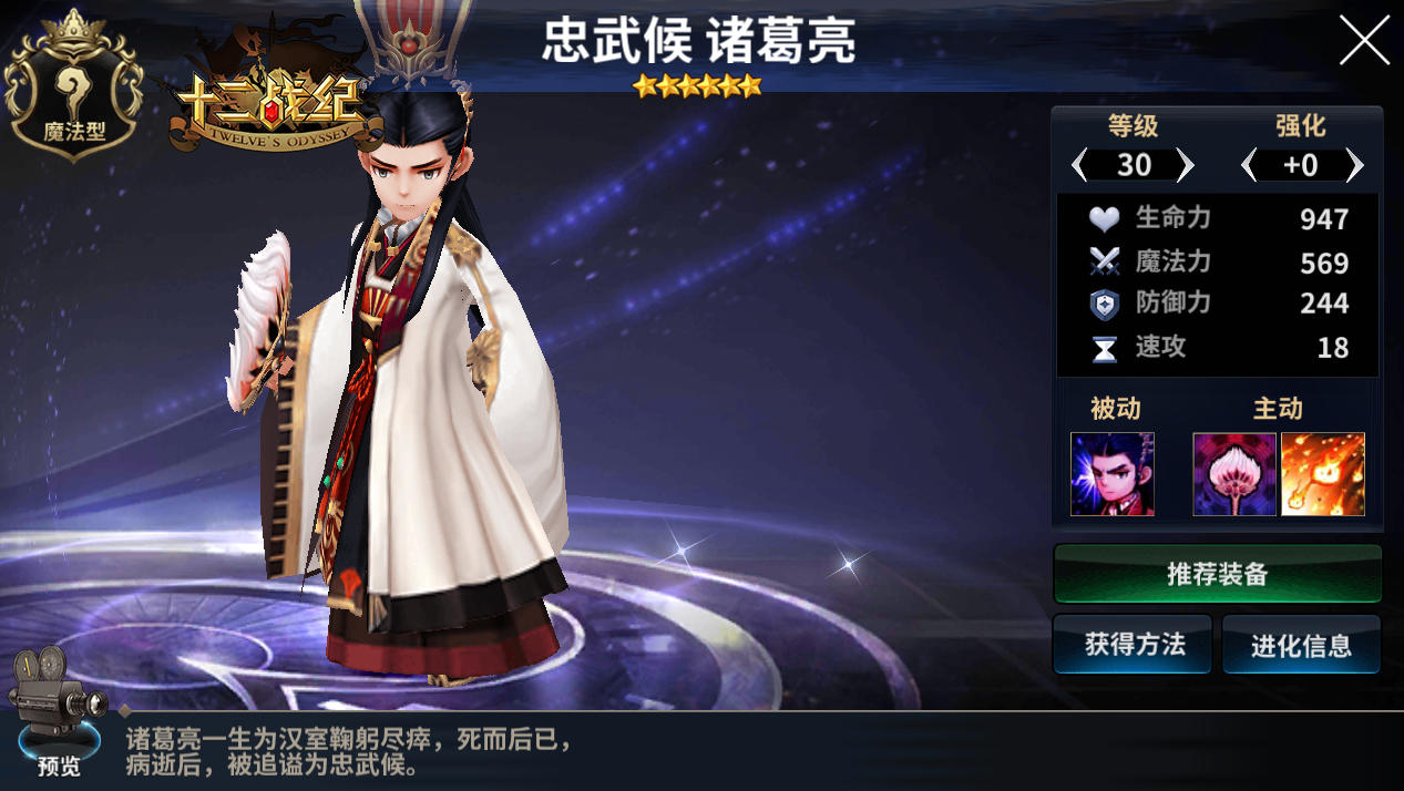 《十二战纪》孔明诸葛亮英雄图鉴,技能属性全解