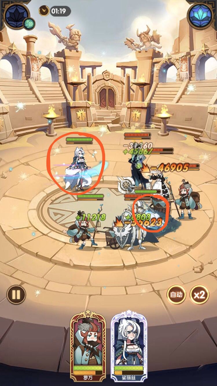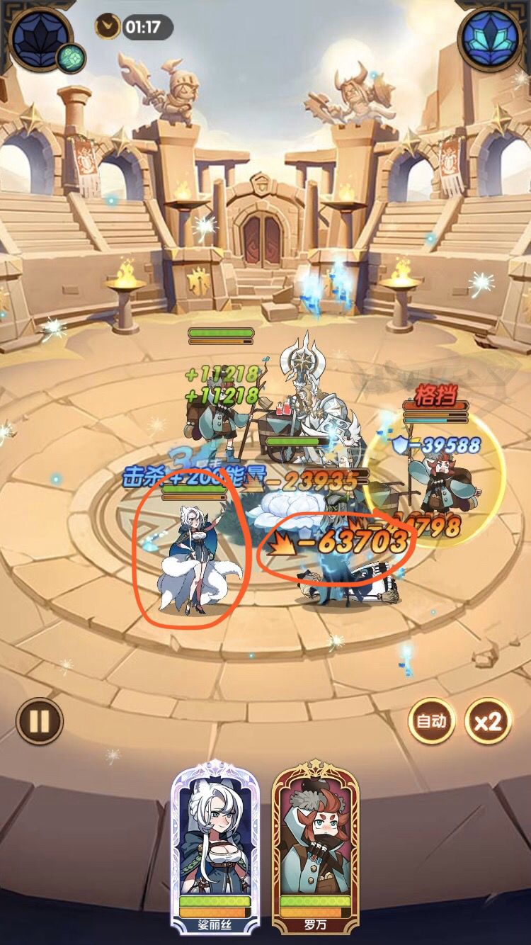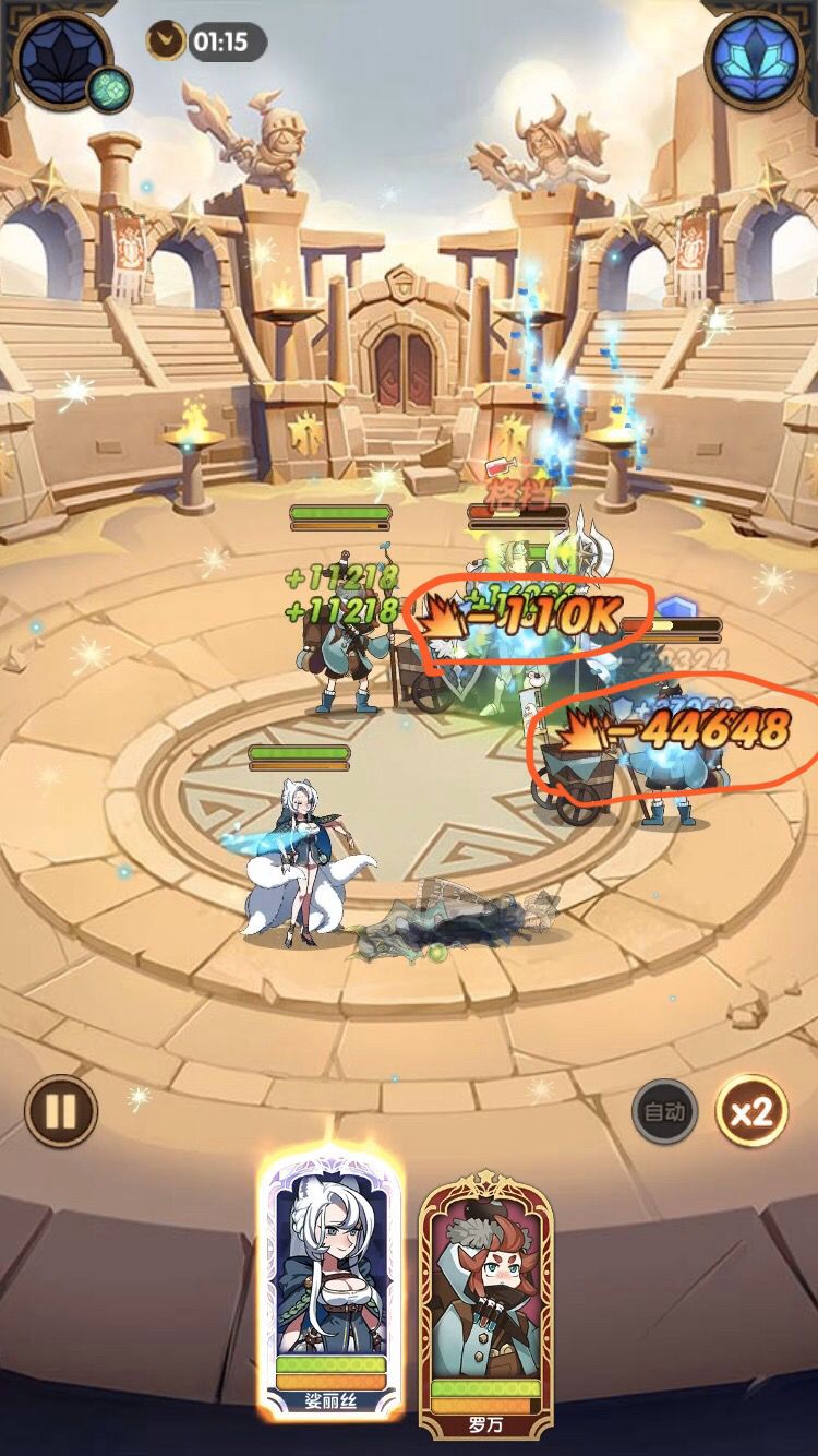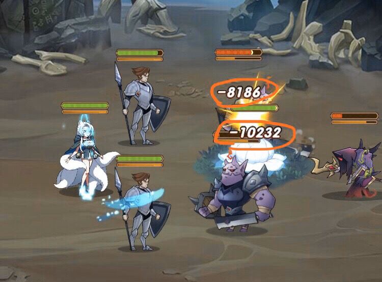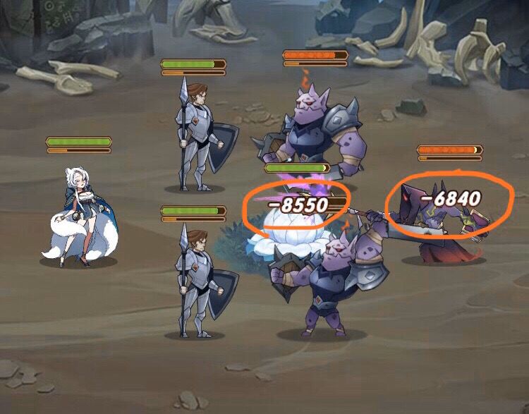 图中是在同一关中亡灵萝莉分别对狐狸与召唤物造成的伤害