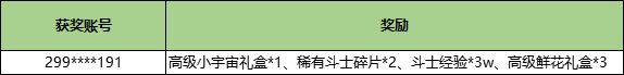 海斗士福袋:从正确参与活动的小伙伴中随机抽取10位小伙伴获得奖励高级小宇宙礼盒*1、稀有斗士碎片*2、斗士经验*3w、高级鲜花礼盒*3/人。