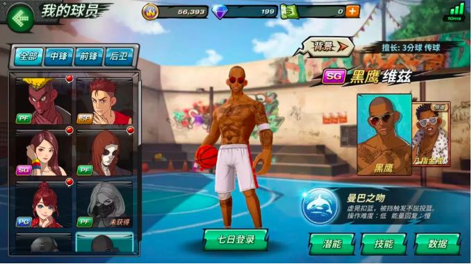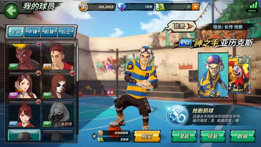 拥有高抢断和跑动属性大招技能:抢断抓球。可以迅速出手抢断并将球抓在手中。