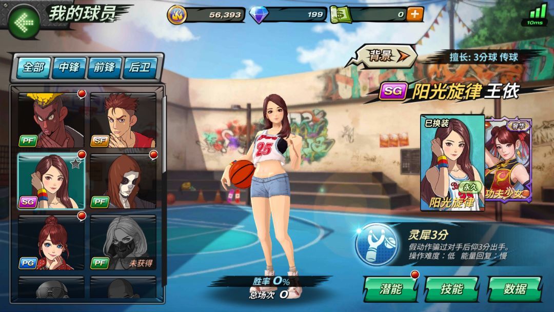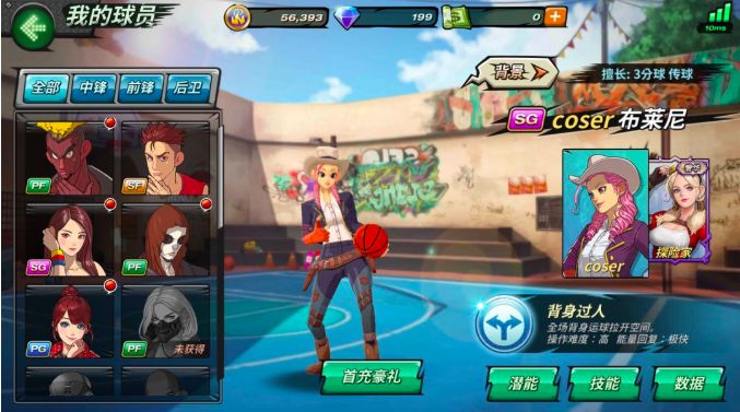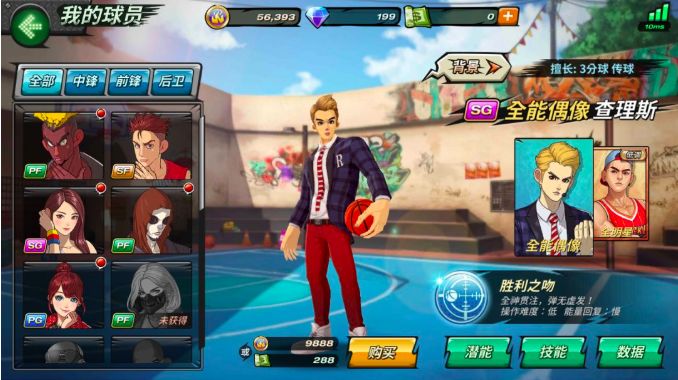 大招技能:灵犀3分。用假动作骗过对手,后仰三分出手。