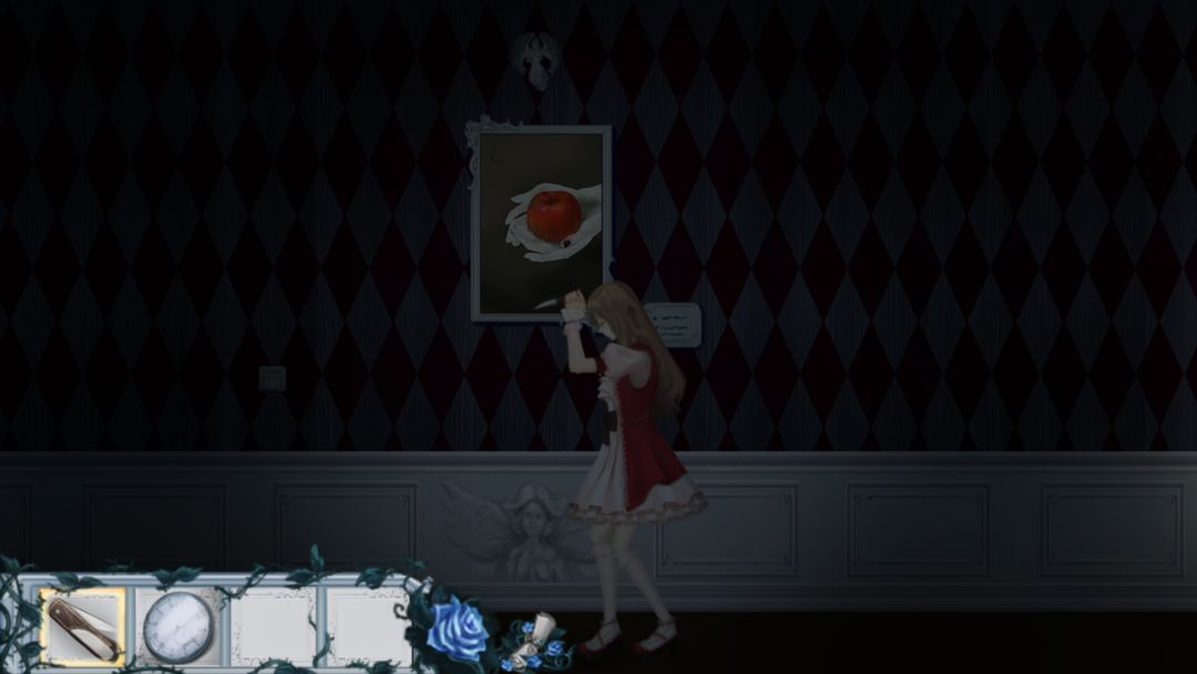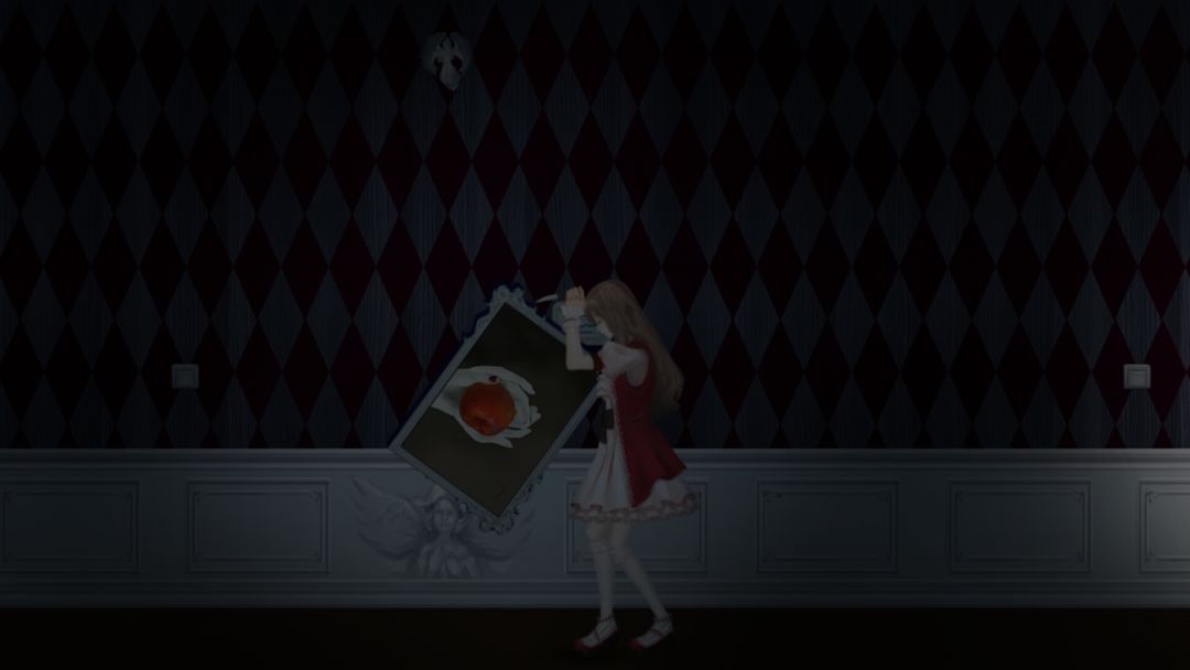 在过完水滴画之后的走廊看到这幅L画,拿起小刀划了一下,然后人物就一直保持划刀状态在这里原地不动轻微抖动,闭着眼睛左手在那里一直划。
