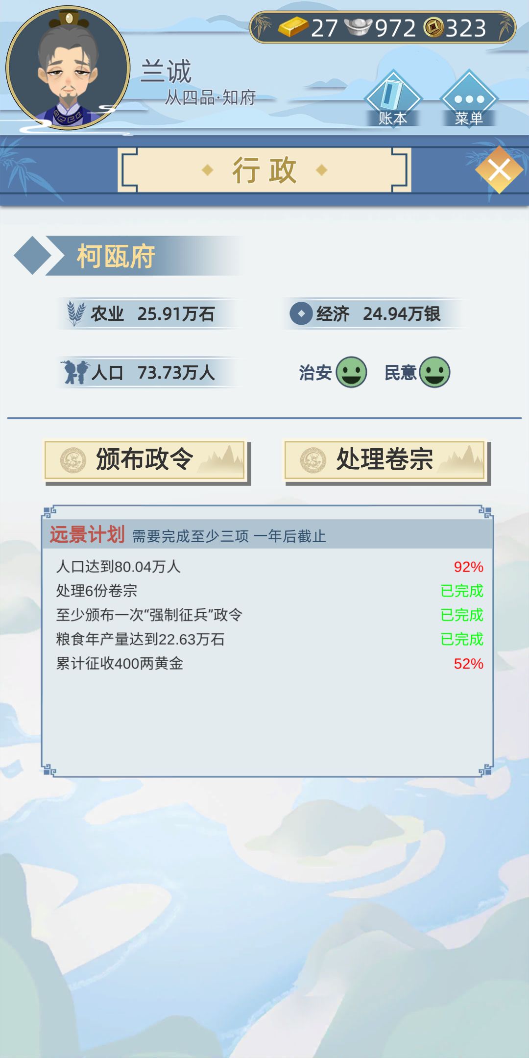朝廷下来的远景任务里那个征收黄金怎么才能完成?颁布哪个政令啊?