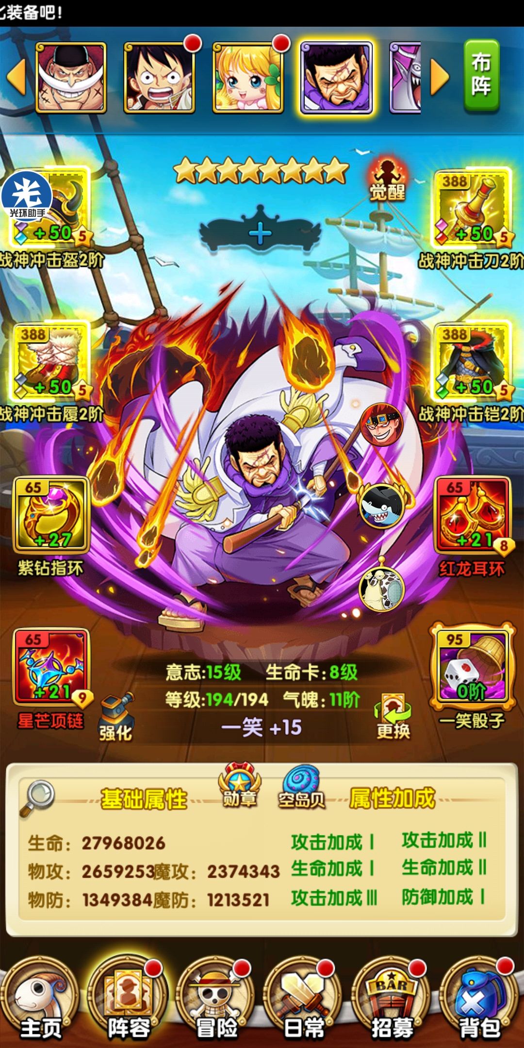 一个月金币收入8,9万,充钱是不可能的。今天附魔更新等级,胖虎估计战斗力可以破1.1亿了。目前pvp只有平民打打,多红船大佬可以越1亿打我,船炮效果恶心的不行(金钱的力量吧)