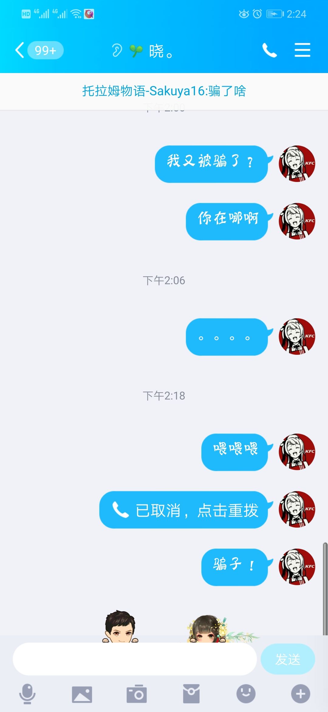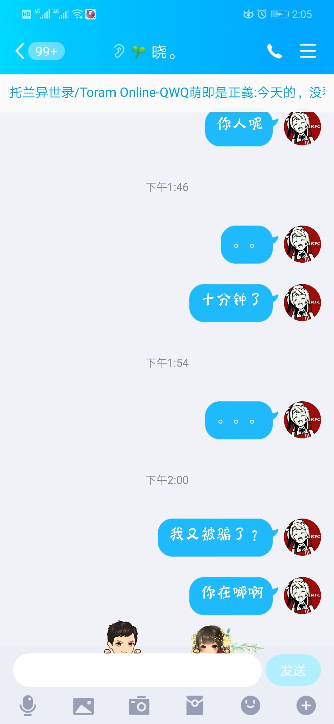 准备120r收个追2,他主动私聊我,先付了60定金,之后就不理我了
